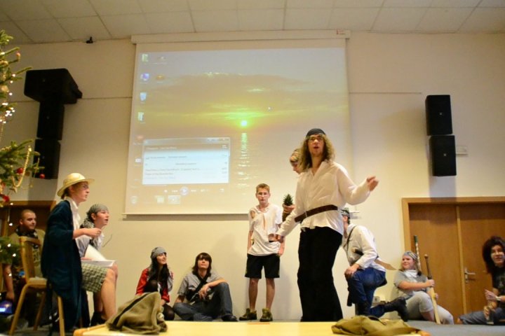 Dnes jsme společně v aule naší školy zakončili kalendářní rok 2011. Ředitel vzpomněl Václava Havla, poděkoval učitelům za jejich práci a popřál všem do nového roku. Vybraní žáci dostali odměnu za svoji činnost ve škole a poté – tak jako každý rok – nás někteří žáci pobavili svými připravenými scénkami. Videa z těchto vystoupení můžete najít ZDE a ZDE. Fotky z příprav žáků najdete ZDE.