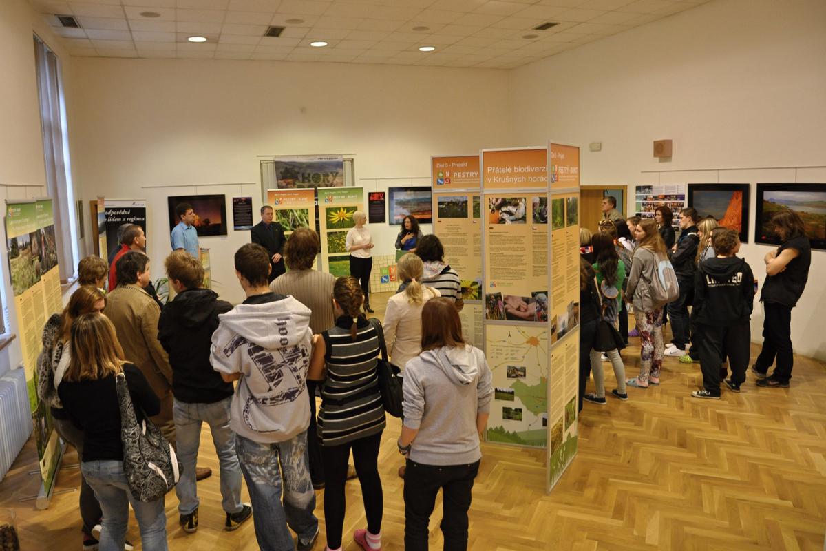 Potěšilo nás, že se na vernisáži sešli zástupci všech třech partnerů projektu Pestrý-Bunt – Schola Humanitas, ZO ČSOP Teplice a Naturschutzzentrum Erzgebirge.