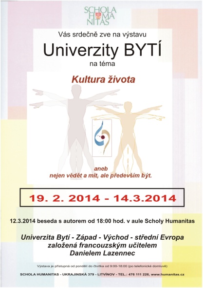 19.02.2014 – 14.03.2014 Univerzita Bytí – Kultura života aneb nejen vědět a mít, ale především být. Daniel Lazennec