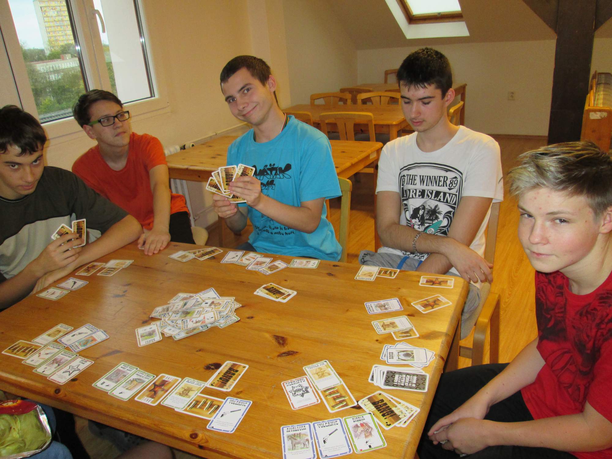 Znáte strategickou karetní hru „Bang“? Pokud ne, přijďte si ji zahrát! Intráci se jí již naučili.