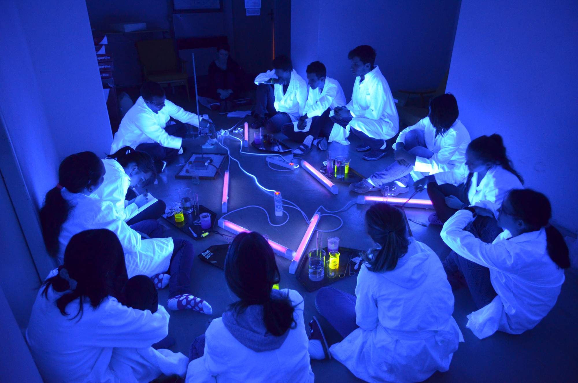 Dnešní PES (Přírodovědný Experimentální Seminář) probíhal netradičně v nejtemnější části školy, ve sklepení vily. Pro pokusy (chemiluminiscence, fluroescence, hořlavý gel a nehořlavé peníze) byla nezbytná naprostá tma. A jak je vidět z fotografií a videa, pokusy se krásně podařily. Příjemné posezení v kruhu mladých přírodvědců, těšíme se na další!